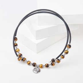 Бусы тигровый глаз ЮАР (колье) 12 мм (регулируемый) (биж. сплав, силикон)