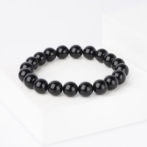 Браслет турмалин черный (шерл) Бразилия (биж. сплав, сталь хир.) 8 мм