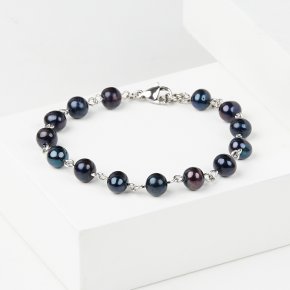 Браслет жемчуг черный Гонконг (сталь хир.) 7 мм 17 см (+3 см)