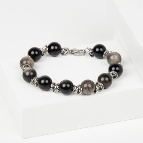 Браслет обсидиан серебристый Мексика 10 мм (сталь хир.)