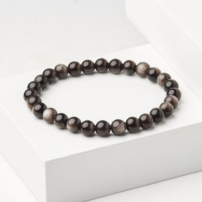 Браслет обсидиан серебристый Мексика 6 мм