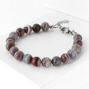 Браслет агат серый Ботсвана (сталь хир.) 8 мм 17 см (+3 см)
