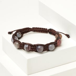 Браслет агат серый Ботсвана (текстиль) шамбала 10 мм 16 см (регулируемый)
