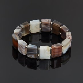 Браслет агат серый Ботсвана (сталь хир.) 16 мм 17 см (+3 см)