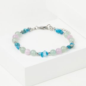 Браслет микс аметист, кунцит (сталь хир.) 6 мм 17 см (+3 см)