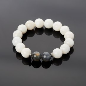 Браслет лунный камень (адуляр) Индия (сталь хир.) 12 мм 17 см