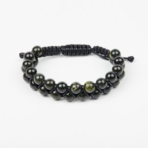 Браслет яшма зеленая Мадагаскар (текстиль) шамбала 8 мм (регулируемый)