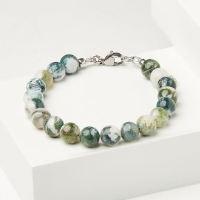 Браслет агат древесный Индия (сталь хир.) 8 мм 18 см (+3 см)