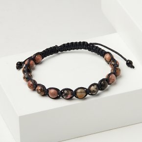 Браслет родонит Россия шамбала 8 мм 16 см (регулируемый) (текстиль)