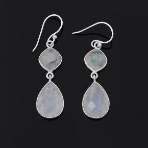 Серьги лунный камень (адуляр) Индия (серебро 925 пр. родир. бел.) огранка