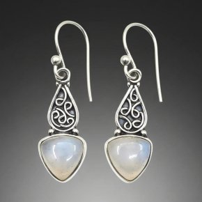 Серьги лунный камень (адуляр) Индия (серебро 925 пр. оксидир.)