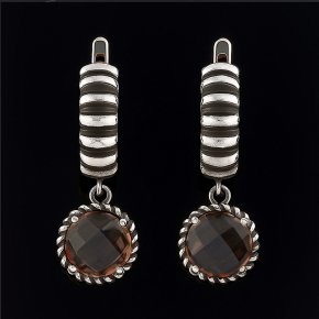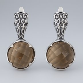 Серьги раухтопаз Бразилия огранка (серебро 925 пр. оксидир.)