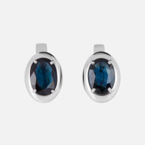 Серьги сапфир Индия пуссеты огранка (серебро 925 пр. родир. бел.)