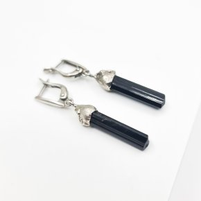Серьги турмалин черный (шерл) Бразилия (биж. сплав)