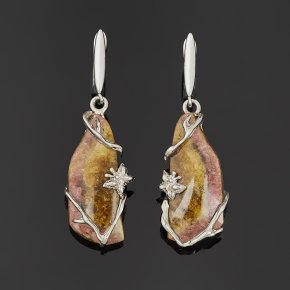 Серьги турмалин полихромный (дублет) Россия (нейзильбер, латунь родир. бел.)