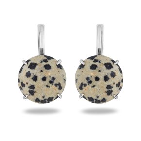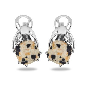 Серьги яшма далматиновая ЮАР (серебро 925 пр. родир. бел.)