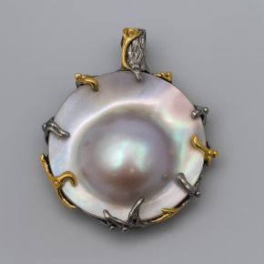 Кулон жемчуг мабэ серый Гонконг (серебро 925 пр. позолота, родир. сер.) круг