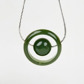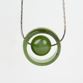 Кулон нефрит зеленый Россия (сталь хир.) 2,5 см