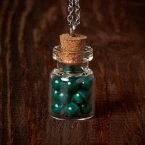 Кулон малахит Конго (биж. сплав, сталь хир., стекло) бутылочка 3 см