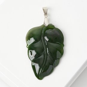 Кулон нефрит зеленый Россия лист (биж. сплав) 5,5-6 см