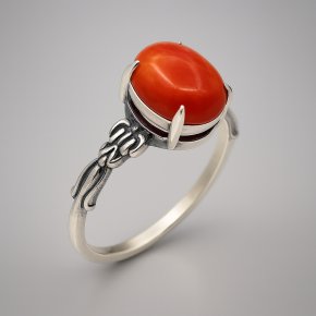 Кольцо коралл оранжевый Индонезия (серебро 925 пр. оксидир.) размер 18