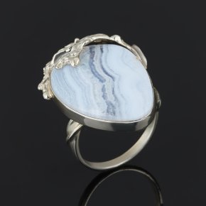 Кольцо агат голубой Намибия (серебро 925 пр. родир. бел.) размер 18,5
