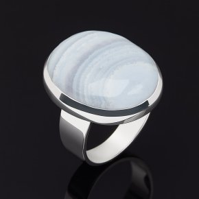 Кольцо агат голубой Намибия (серебро 925 пр. родир. бел.) размер 17