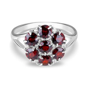 Кольцо гранат альмандин Индия огранка (серебро 925 пр. родир. бел.)