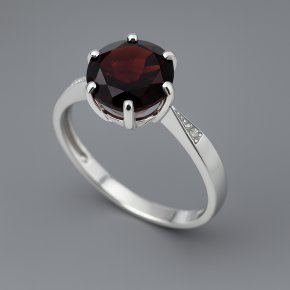 Кольцо гранат альмандин Индия (серебро 925 пр. родир. бел.) огранка размер 18
