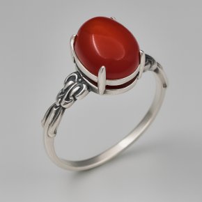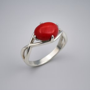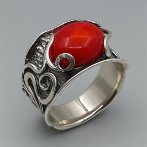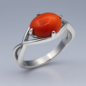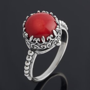 Кольцо коралл красный Индонезия (серебро 925 пр. оксидир.)