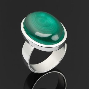 Кольцо малахит Конго (серебро 925 пр. родир. бел.) размер 17,5