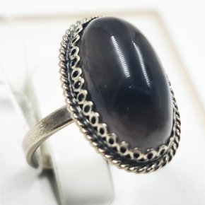 Кольцо обсидиан Армения (серебро 925 пр. родир. бел.) размер 18,5