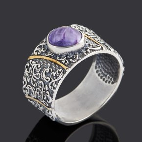 Кольцо чароит Россия (серебро 925 пр. позолота, посеребр.) размер 19