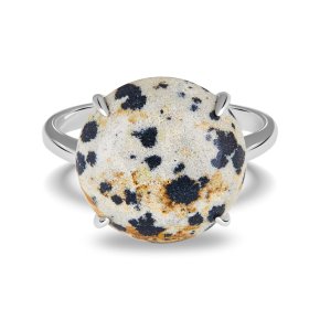 Кольцо яшма далматиновая ЮАР (серебро 925 пр. родир. бел.) размер 18,5
