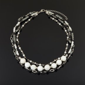 Бусы микс агат, гематит, лунный камень (сталь хир.) (колье) 46 см (+7 см)