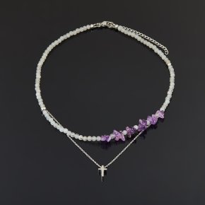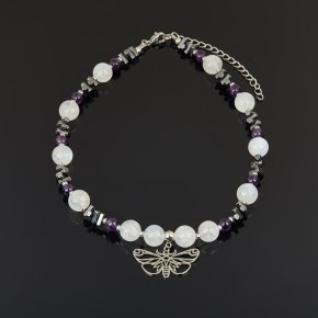 Чокер микс аметист, гематит, лунный камень (сталь хир.) 38 см (+7 см)
