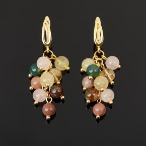 Серьги микс авантюрин, агат, розовый кварц (сталь хир. позолота)