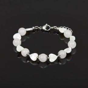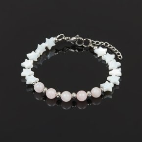 Браслет микс оникс, розовый кварц (сталь хир.) 10 мм