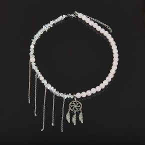 Браслет микс оникс, розовый кварц (сталь хир.) 10 мм 18 см