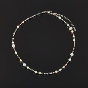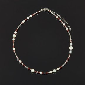 Бусы микс гематит, гранат, жемчуг (сталь хир.) 42 см (+7 см)
