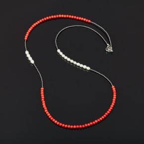 Бусы микс гематит, жемчуг, коралл (сталь хир.) длинные 78 см
