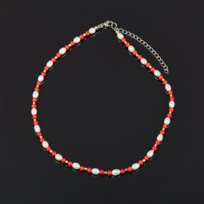 Бусы микс гематит, жемчуг, коралл (сталь хир.) 42 см (+7 см)