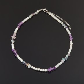 Бусы микс аметист, лунный камень, флюорит (сталь хир.) 4 мм 44 см (+7 см)