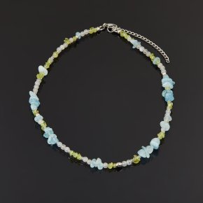 Чокер микс аквамарин, лабрадор, хризолит (сталь хир.) 4 мм 40 см (+7 см)