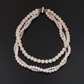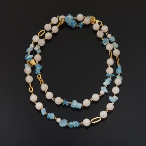 Бусы микс аквамарин, розовый кварц (сталь хир.) длинные 97 см