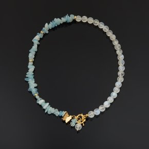 Бусы микс аквамарин, лунный камень (сталь хир. позолота) 8 мм 43 см