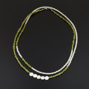 Бусы микс лунный камень, перламутр, хризолит (сталь хир.) длинные 127 см