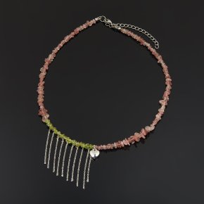 Чокер микс лунный камень, розовый кварц (сталь хир.) (колье) 38 см