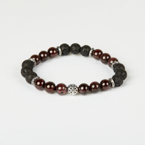 Браслет микс вулканическая лава, гранат (биж. сплав) 8 мм 17 см