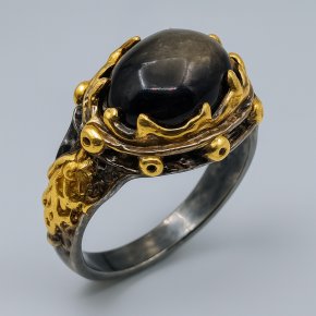 Кольцо звездчатый корунд Нигерия (серебро 925 пр. позолота, родир. черн.) размер 17,5